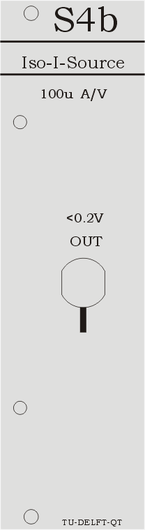 S4b, isolated Current Source This module is designed as a very low noise bias source for IV measurements. It's output is fully isolated (floating source) , energy is send via an optical path. The maximum voltage swing of the current source should be <=200mV to prevent non-linearity. |